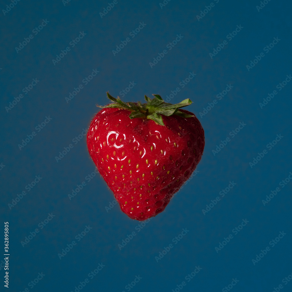 Fruit pop art red strawberry blue color background art side lighting