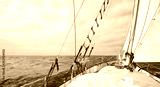 Panoramic view of an old schooner sailing the ocean.