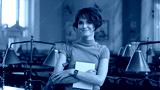 Portrait of beautiful student girl happily looking in camera standing with backpack and textbook in college library