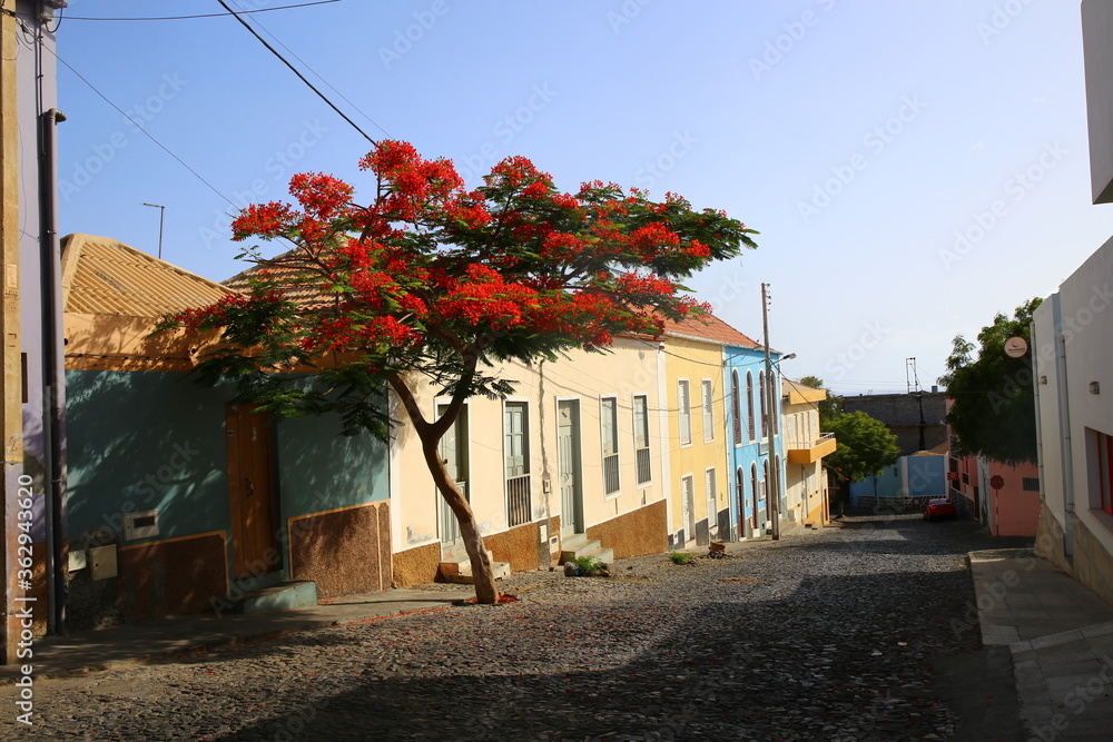 Flamboyant tree in Sao Felipe, Fogo, Cape Verde