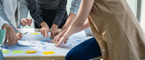 Group of young asian creative business brain storm meeting presentation,discussing roadmap to product launch, planning,strategy,new business development,working with new startup project in office.
