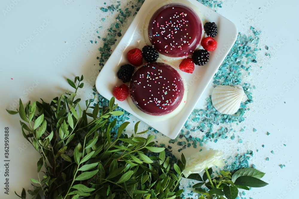 hausgemachte Erdbeere und Vanillepudding in weißem Teller