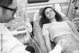 Skillful sonographer using ultrasound machine at work