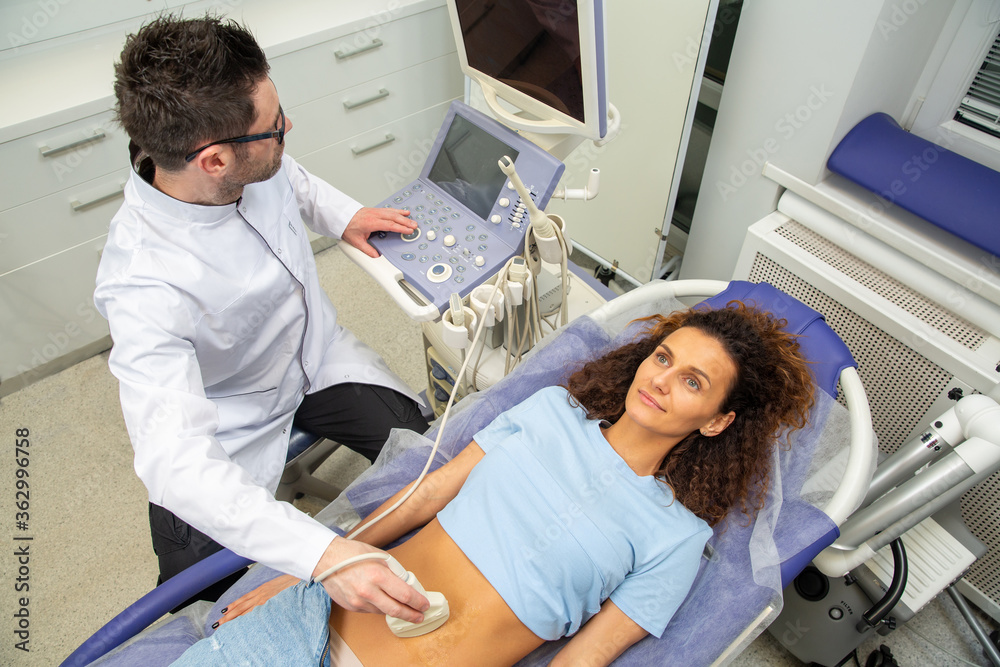 Skillful sonographer using ultrasound machine at work