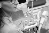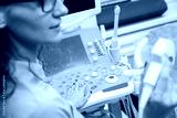Skillful sonographer using ultrasound machine at work