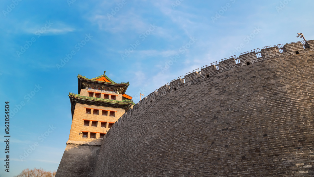 Beijing, China - Jan 14 2020: Deshengmen Archery Tower is a city gate that was once part of Beijing's northern city wall. It is one of Beijing's few preserved city gates and now stands as a landmark
