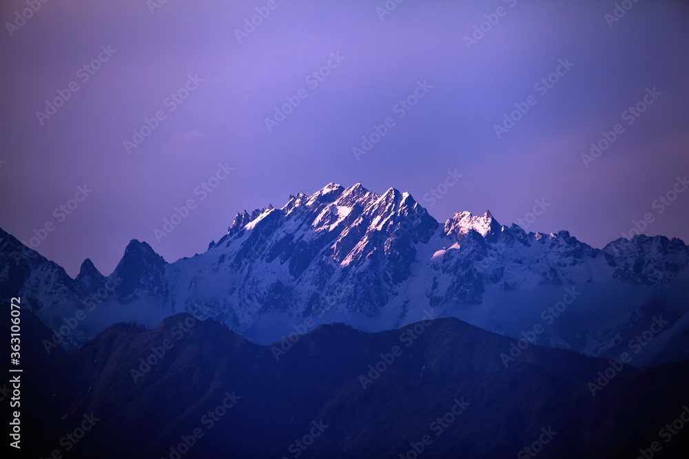 Kangchenjunga close up view from Pelling in Sikkim, India.