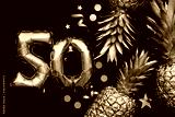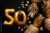 50th birthday celebration background with gold balloons and golden pineapples