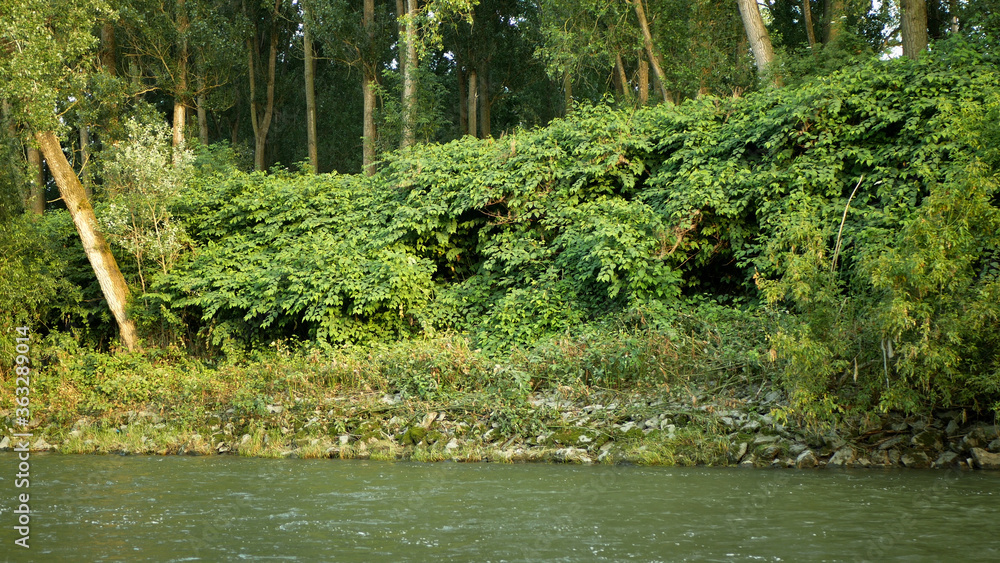 Knotweed Japanese river, invasive expansive species of dangerous plants leaf in shrub bushes growth lush, leaves Reynoutria Fallopia japonica intruder neophyte calamity flowers gatecrasher herbicides