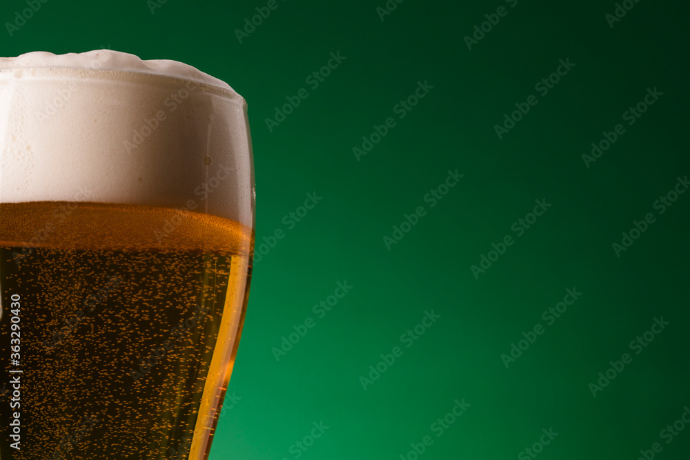 St Patrick's Day beer against a green background