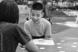 Disabled child on wheelchair happy time to home school and reading a book, Study and Work at home for safety from covid 19, Life in the education age of special need kid, Happy disability boy concept.