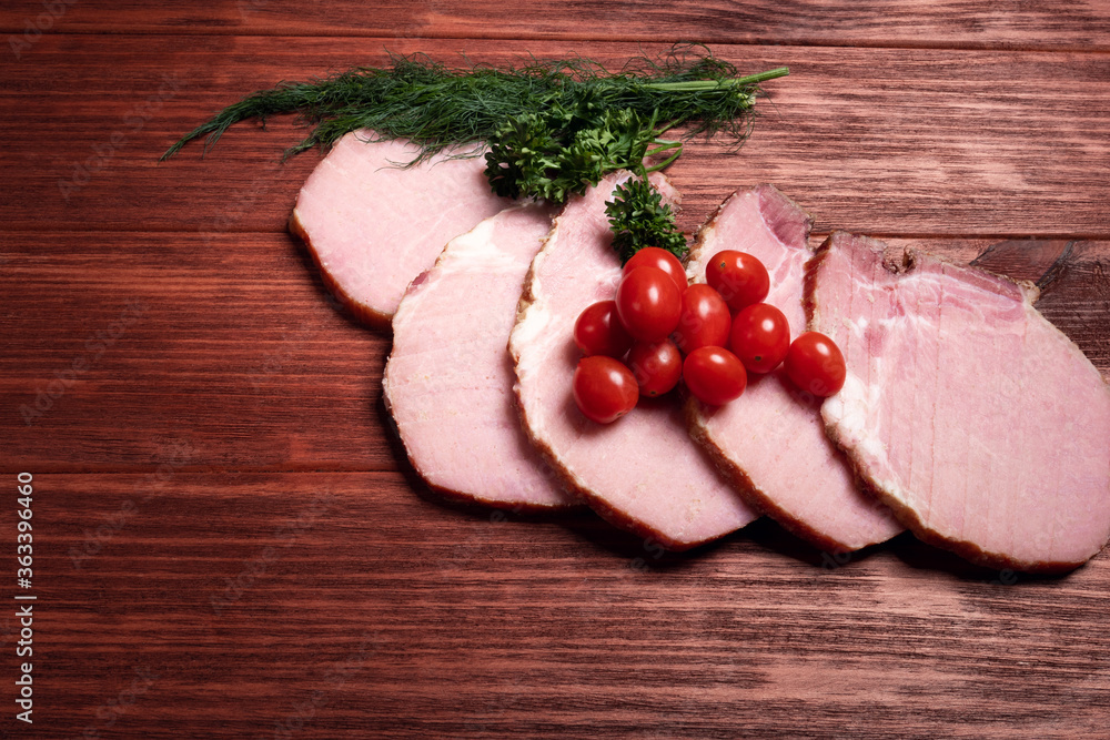 Premium cuts of raw pork chops. Fresh and raw meat. Raw meat mixture. Raw beef steaks on wooden table.