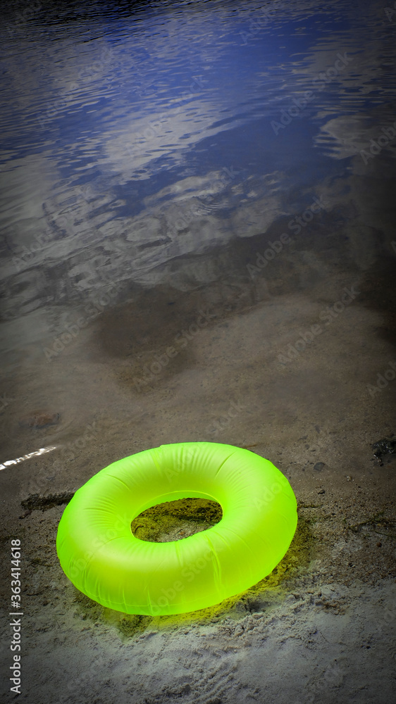 Donut raft on the edge of a lake