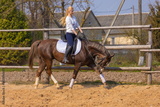 Girl riding a horse gallops in a paddock on a ranch