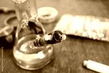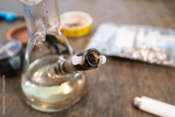 Partially smoked bowl of weed; bong marijuana background