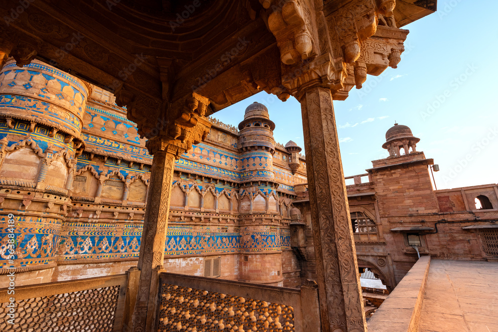 India tourist attraction - Mughal architecture - Gwalior fort. Gwalior, Madhya Pradesh, India