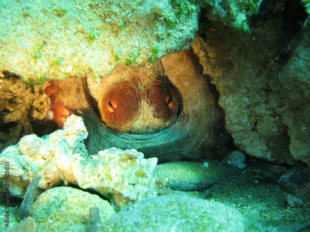 "Octopus Vulgaris" in his hole. Shotted in the wild.
