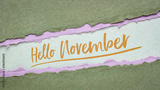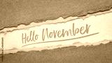 Hello November welcome note - handwriting on a handmade rag paper, calendar concept