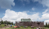 Skrzyczne, Poland, July 04, 2020: Peak, with a tourist hostel, meteorological station and telephony tower and chair lift station in Beskid Slaski Mountains