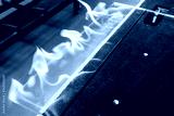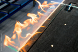 Cutting glass called VSG. (Very Safe Glass) Fire burning the foil connecting the glass.