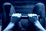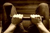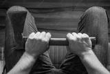 A man squeezing an ax in his knees. The concept, Domestic violence, social problems, crime