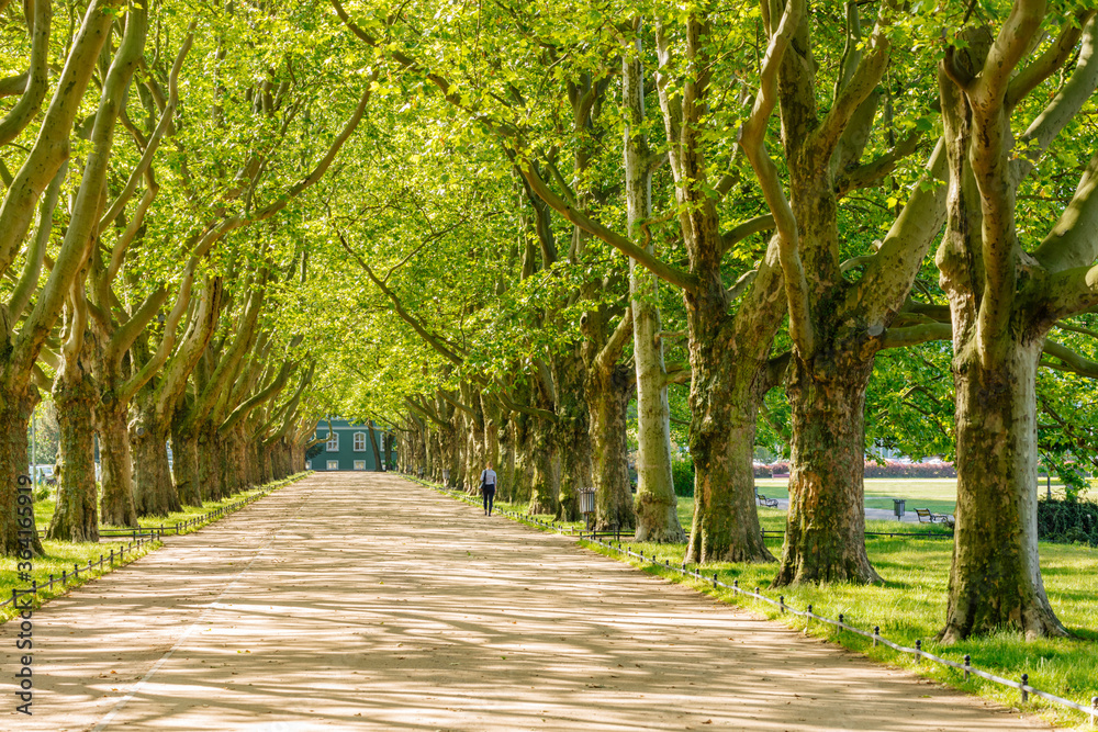 Walking alley, Plane Trees, Szczecin in Poland, City Park called Jasne Bonia