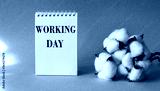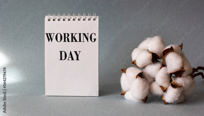 On a blue background a calendar with the text Workday, next to a cotton branch