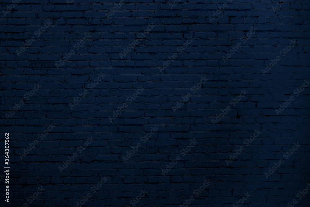 Blue brick wall. Loft interior design. Blue paint of facade.