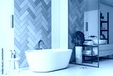 Clean turquoise bathroom with comfortable washbasin.