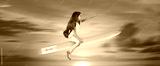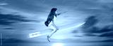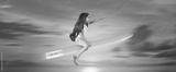 Back to school concept and little girl sitting on pencil is flying in the sky.