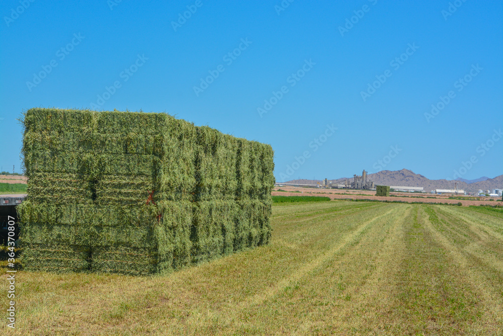 Alfalfa Hay, grown, Baled, ready to be shipped to feed stores. Goodyear, Maricopa County, Arizona USA