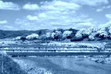 Cherry blossoms along the Kamo River (Kamo-gawa) in Kyoto, Japan. The riverbanks are popular walking spots for residents and tourists.