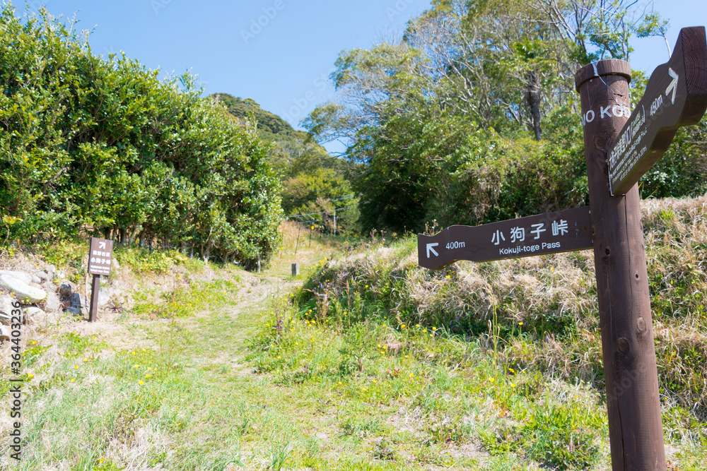 Kokuji-Toge Pass on Kumano Kodo (Nakahechi Route) in Nachikatsuura, Wakayama, Japan. It is part of the UNESCO World Heritage Site.