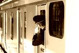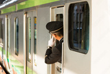 横浜桜木町駅、出発確認する乗務員・日本