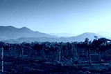 Vineyards in the mountains at sunset. Beautiful summer landscape. Crimea, Russia