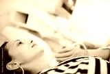 a doctor in rubber gloves makes an ultrasound of the thyroid gland of a young pretty woman in a modern clinic.