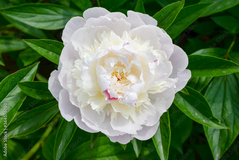 single white peony flower in garden