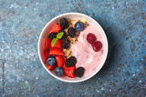 Healthy sweet breakfast with granola, fresh berries and homemade yougurt