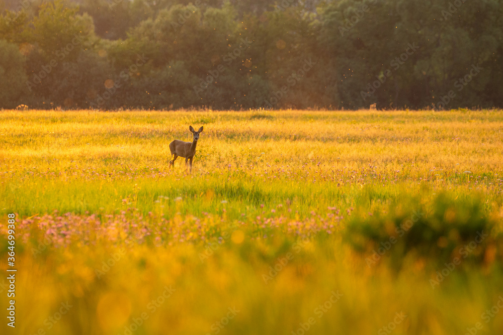 Roe deer in the magical nature. Beautiful european wildlife. Wild animal in the nature habitat. Roe deer rut.