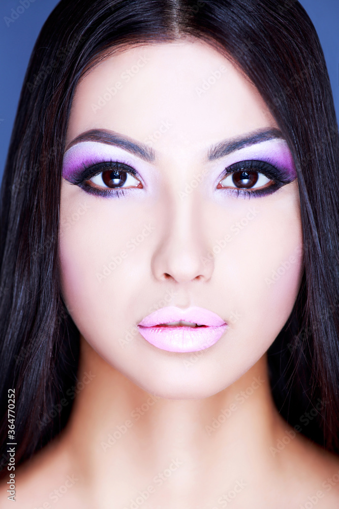 Sexy Beauty Woman Portrait. Professional Holiday Make up for Brunette. Beautiful Fashion Model Girl. Long Hair. Creative Hairstyle and Makeup