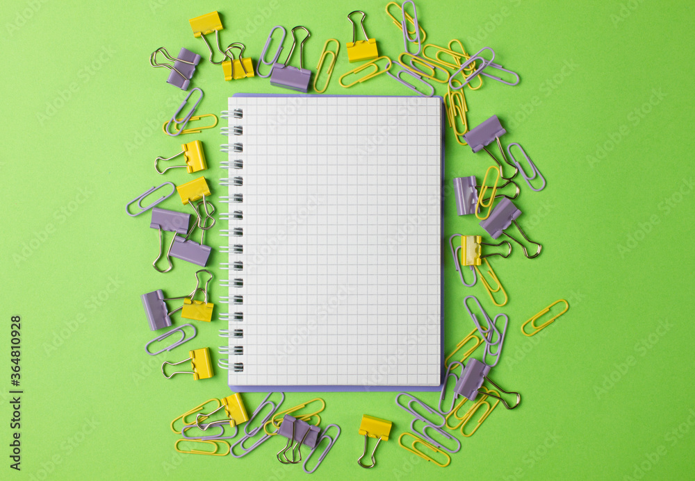 School creative concept. School supplies on green background. Copy space