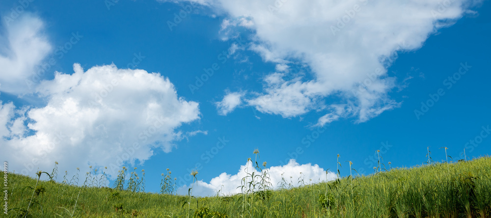 Agriculture plantations on a hill on a blue sky background, Natural background concept.