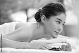Young Asian woman relaxed while receiving spa head massage