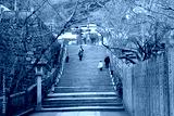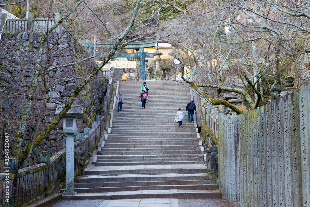 Approach at Kotohiragu Shrine (Konpira Shrine) in Kotohira, Kagawa, Japan. The Shrine was a history of over 1300 years and patron of sea ship transport and sailor.