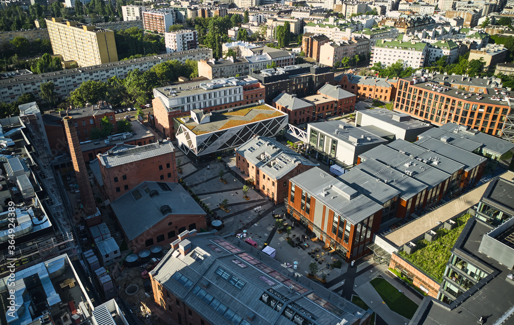 Koneser Square in Warsaw, Poland. Popular loft complex to have a lunch, dinner or evening hangout with friends. Icon of modern Polish architecture.