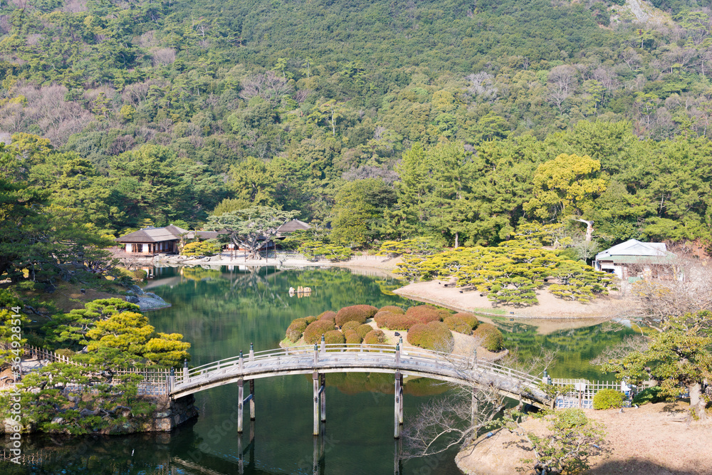 Ritsurin Garden in Takamatsu, Kagawa, Japan. Ritsurin Garden is one of the most famous historical gardens in Japan.
