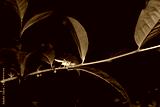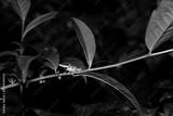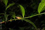 A grasshopper on a leaf of a bush