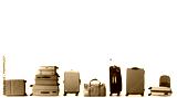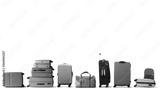 Large multicolored tourist suitcases stand in a row