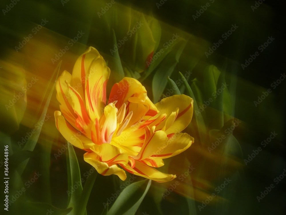 Blurred shot of a beautiful yellow and orange tulip, motion blur