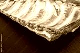 Whole raw pork ribs isolated on dark, black, stone board. spare ribs or belly. close-up